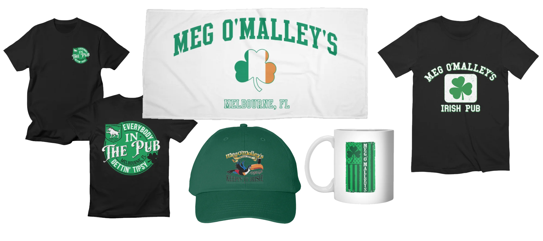 Can't make it to Meg's or didn't find the style or color you were looking for? Our online store features Men’s, Women’s, and Kids (down to infant) Shirts, Home Goods, and other items including Coffee Mugs, Stickers and Skateboards. CHECK IT OUT!